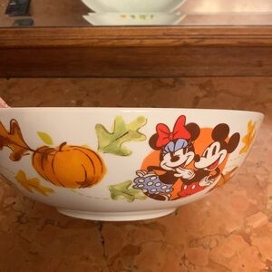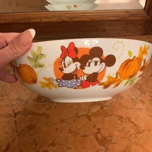 Brand new Disney Mickey & Minnie Mouse Fall Thanksgiving large serving bowl . Approximately 10” diameter & 3” deep .