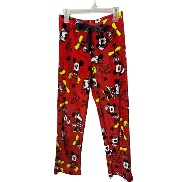 Disney Mickey & Minnie Mouse Plush Fleece Pajama Lounge Pants – Red – Size S (4–