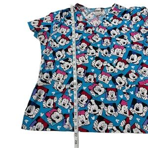 Disney Mickey & Minnie Mouse Print Women Blue V-Neck Short Sleeve Scrub Top Sz L