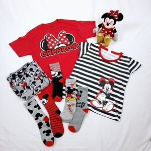 Disney Mickey & Minnie Mouse Shirt Pajamas Toy Socks Set M, S, One-Size