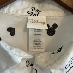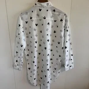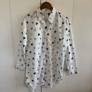 Disney Mickey Minnie Mouse Sleep Shirt White Cotton Button Down Medium