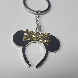 Disney Mickey / Minnie Mouse EARS Gold Glitter Bow Keychain