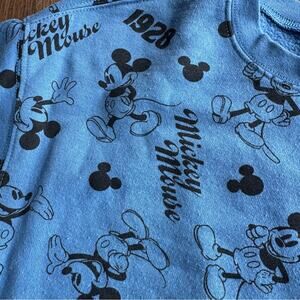 Keywords: Disney, Mickey Mouse, 1928, Sweatshirt, Crew Neck, All Over Print, Blue, Vintage, Cartoon, Character, Pullover, Casual, Comfortable