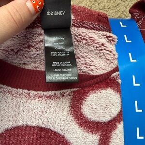 Charming Disney sweater with Mickey Mouse design. Features red and white pattern. Ideal for casual wear.