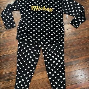 Disney Mickey Mouse 3 Pc Velour Pajama Set Gold Logo W/ Matching Socks Sz M 8-10