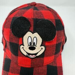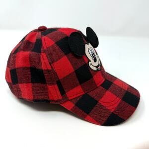 Disney Mickey Mouse 3D Flannel Buffalo Check Plaid Toddler Hat In Red Black One Size