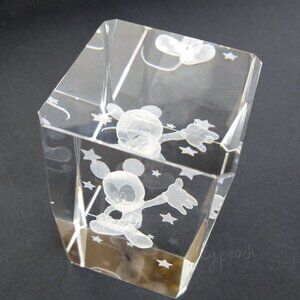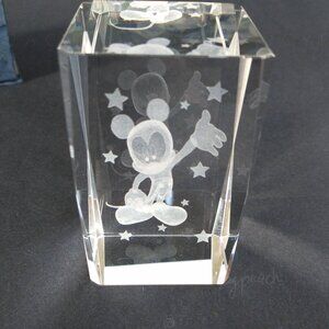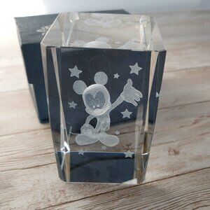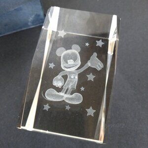 Disney Mickey Mouse 3D Laser Etched Crystal Paperweight Holographic Block Stars
