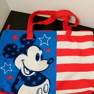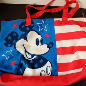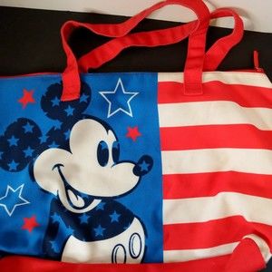 Disney Mickey Mouse American USA Flag Stars & Stripes Tote Fold-able Lrg 20" Bag. Great condition.