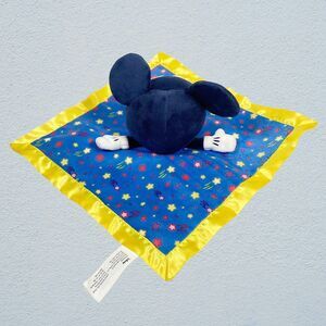Disney Mickey Mouse Baby Lovey Plush Rattle Toy Security Blanket Blue Yellow