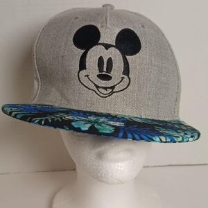 Disney Mickey Mouse Baseball Cap SnapBack Gray Blue Floral Hawaiian Hat