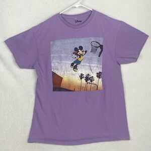 Disney Mickey Mouse Basketball Dunk Graphic Shirt Large Purple Short Sleeve