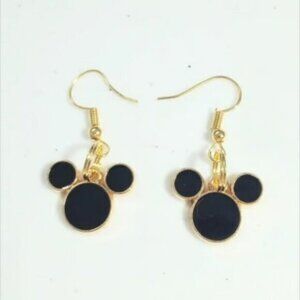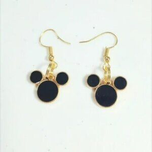 Disney Mickey Mouse Black Gold Tone Dangle Earrings New