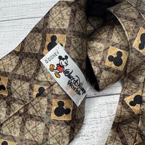 Disney Mickey Mouse Brown Geometric Silk Necktie Tie Walt Disney World