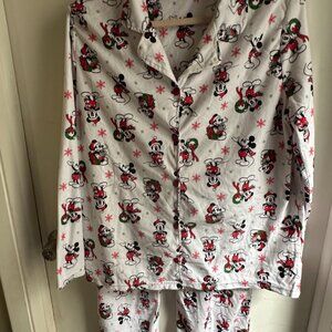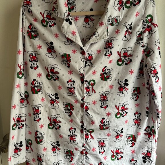 Disney Mickey Mouse Christmas Pajama Set Women XL Holiday Fleece Button Top