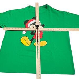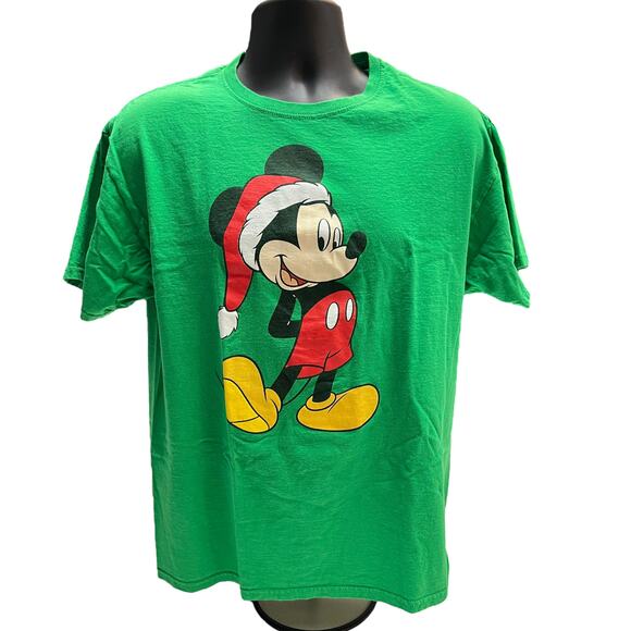 Disney Mickey Mouse Christmas T-Shirt - Size Large - Green Holiday Santa Hat Tee