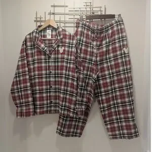 Disney Mickey Mouse Classic Plaid Pajama Set Women's Sz 1X 100% Organic Cotton