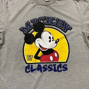 This Disney Mickey Mouse Classics Soft Cotton Gray T-Shirt Y2K Women's Size Large blends vintage fashion with modern style. Crafted with soft cotton fabric, this tee features the iconic classic Mickey Mouse design that is sure to bring nostalgia and joy.