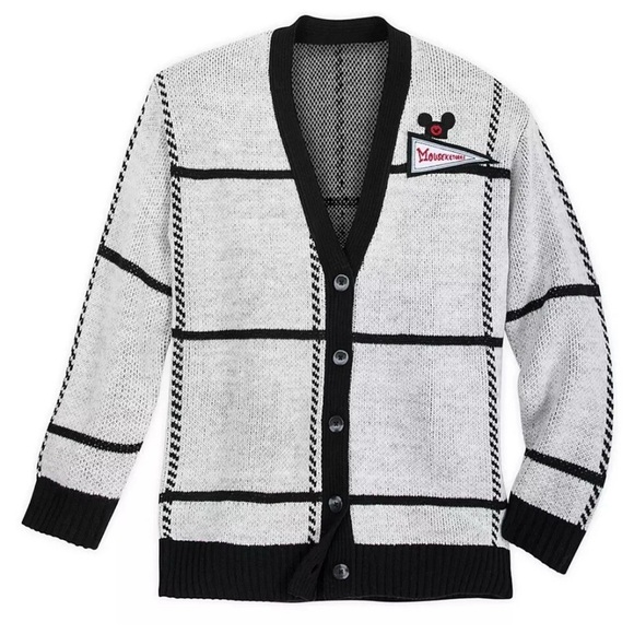 Chic Disney cardigan with a bold checkered pattern. Features a classic button-up front and iconic branding.