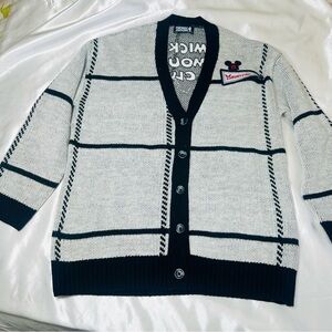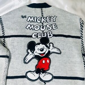 Disney Mickey Mouse Club Mouseketeers Cardigan SZ M Grayscale Black Sweater