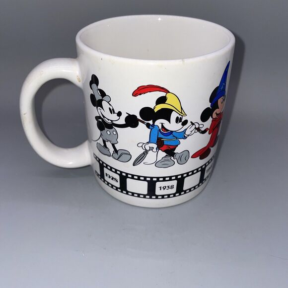 Disney Mickey Mouse Coffee Mug Cup Celebrating from 1928-Today Thru the Years
