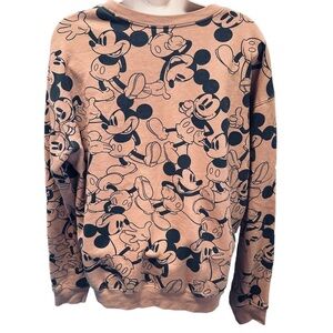 Disney Mickey Mouse Crew Neck Pullover Sweatshirt Womens Large Tan Beige neutral