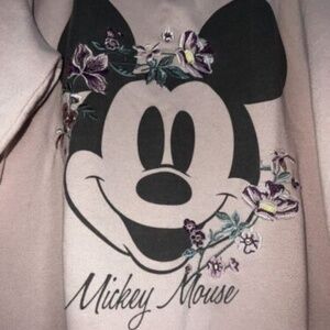 Disney Mickey Mouse Crew Neck Sweatshirt Med Embroidered Flowers Cotton On pink