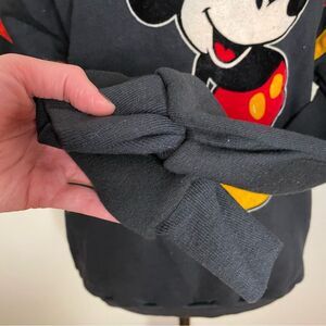 Embrace the magic of Disney with this black and red crewneck pullover sweatshirt, showcasing a classic soft textured Mickey Mouse graphic