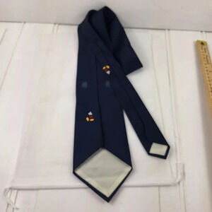 Add a touch of Happiness to your outfit with this Mickey Mouse tie. This collectible piece features a classic width and a pointed style. This Dark Blue Tie is adorned with Mickey Mouse accents, making it a perfect addition to any Disney fan's wardrobe. This tie is adjustable and has no attachment type, making it suitable for all. Whether you're dressing up for a special occasion or adding some fun to your everyday look, this tie is sure to make a statement. Pre loved, in Great Condition. This Tie Has No Care Tags or Name Brand Tag! Please See Pictures to See Exact Tie and Condition! Please Reach Out With Any Questions! Have a Fabulous Day!