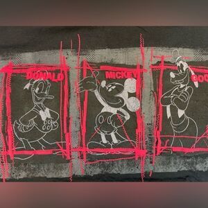 Disney Mickey Mouse Donald Goofy Graphic T-shirt Men Large Black Gray Colorblock