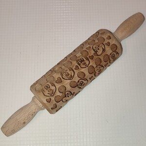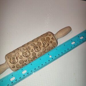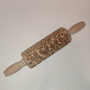 Disney Mickey Mouse Dough Rolling Pin Embossed Wooden Cookies Decor Vintage