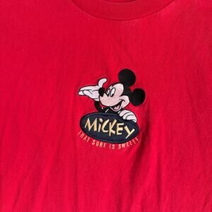 Disney Mickey Mouse Embroidery Vintage T Shirt Y2K 90s Red Large