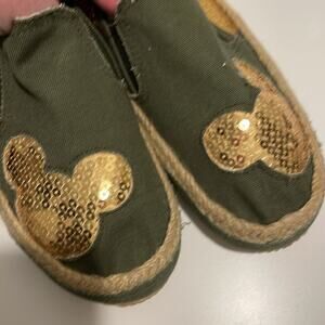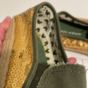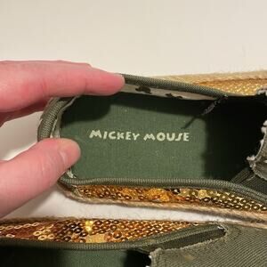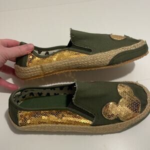 Disney Mickey Mouse Espadrilles Olive Green Canvas Gold Sequin Size 9