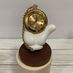 Disney Mickey Mouse Figural Hand Pocket Watch Gold Plated Clock Desktop
