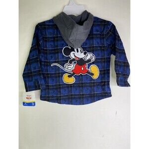 Disney Mickey Mouse Flannel Long Sleeve Button Up Hooded Shirt Top Kids Boys 3T