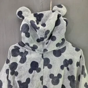 Disney Mickey Mouse Fleece Onesie Union Suit Womens L Grey Navy Excellent Hood