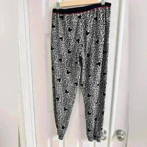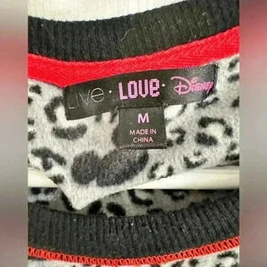 Disney brand Mickey Mouse pajama set. Fleece with leopard print. Some pilling on Mickey’s ears. Otherwise in excellent used condition. Size women’s medium.