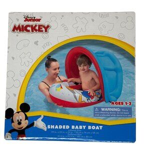 Make pool time magical! This Disney Junior Mickey Mouse Funhouse inflatable baby float keeps little ones shaded and smiling. Sturdy seat, colorful graphics, and built-in canopy for sun protection.