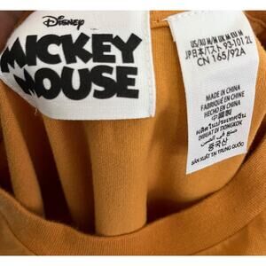 This Disney Mickey Mouse T-shirt in size M features a yellow tie-dye pattern with a Crew Neck and short sleeves. Made of 100% cotton jersey fabric, it has a casual sleeve type and pullover closure. The graphic design showcases Mickey Mouse, making it a colorful and retro addition to your wardrobe, suitable for travel and casual occasions in any season. Perfect for women who love fun and nostalgic styles.