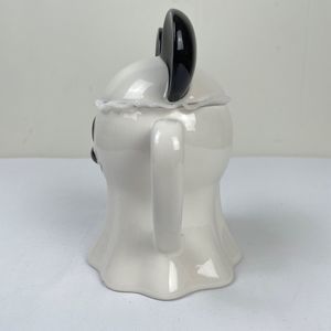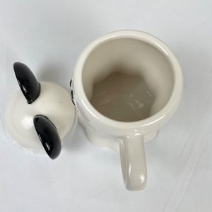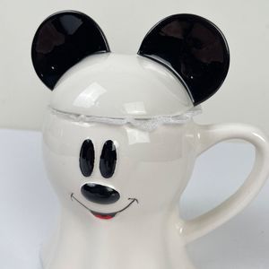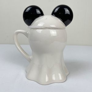 Disney Mickey Mouse ghost coffee mug with topper. The mug is new but has a small chip in the bottom, as pictured. No tags. Approximately 7.5" tall.