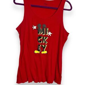Red Mickey graphic print tank top. Good overall condition. No rips or stains. Normal signs of wear from being washed and worn.