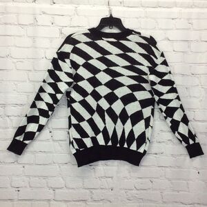 Disney Mickey Mouse Graphic Sweater Women's Size XS Black/White Check Pullover