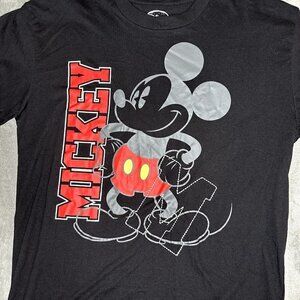 Up for sale is a - Disney Mickey Mouse Graphic T-Shirt Unisex Large Black Spell Out Red