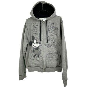 Disney Mickey Mouse Gray Graphic Hoodie Zip-Up Heavyweight Sweatshirt Mens Small