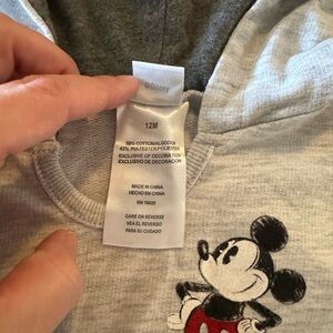 Disney- Mickey Mouse Gray Kids Hoodie with Ears, Size 12M