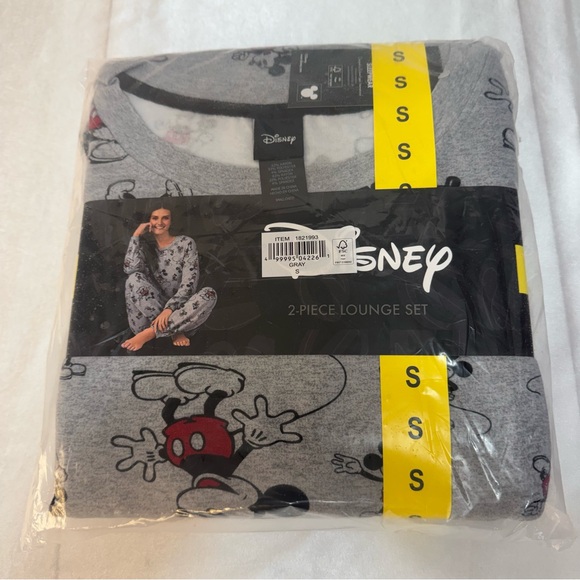 Get cozy in these Mickey Mouse pajamas. Features long sleeve shirt and pants and multiple MM all over pattern in classic Disney charm. Soft and comfortable, ideal for lounging. Brand new in package.