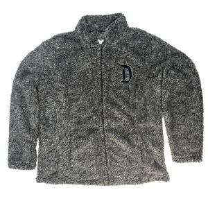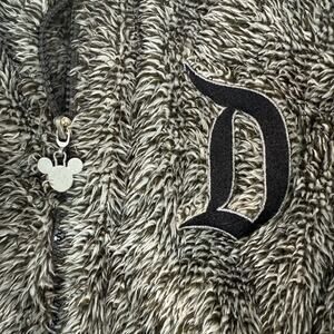 Disney Mickey Mouse Gray Sherpa Fleece Zip Up Jacket Large Disneyland Logo