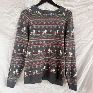 Disney Mickey Mouse, Gray Snowflake, Sleigh Christmas Holiday Sweater - Size M