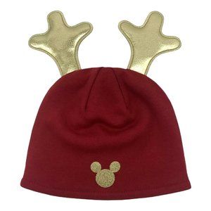 Beanie hat with 3D gold antlers and gold glitter Mickey Mouse icon