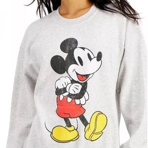 Disney Mickey Mouse Hoodie Sweatshirt Womens Long Sleeve Pullover Grey