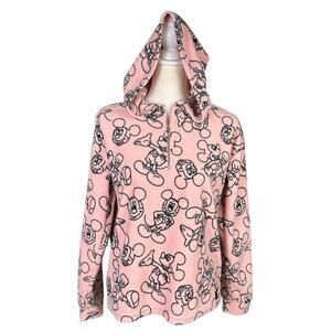 Disney Mickey Mouse Hoodie Women Size Small Pink Blush Cozy 1/4 Zip Fleece Top